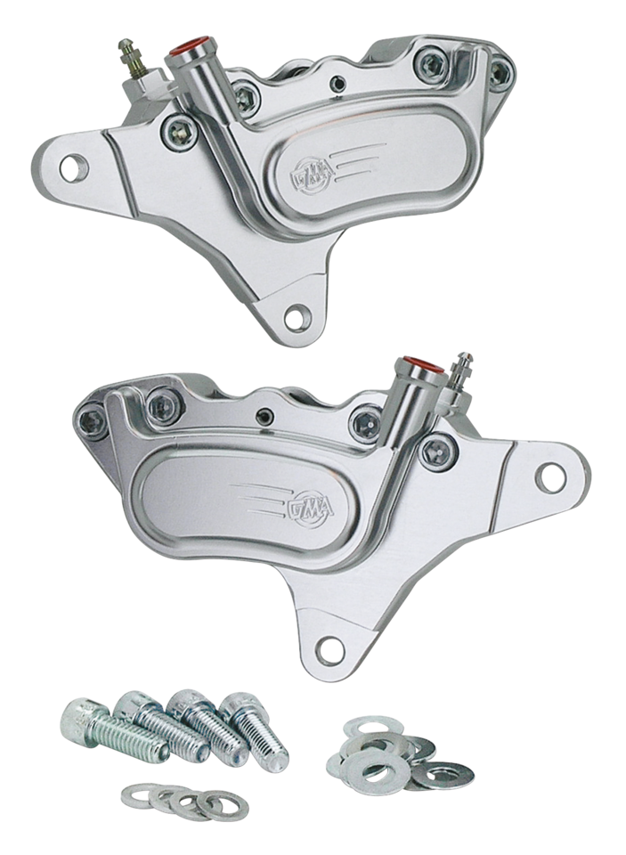 Zestaw jednoczęściowego, 4-tłoczkowego zacisku hamulcowego i wspornika, który zastępuje jednotłoczkowe zaciski przednie OEM, zapewniając łatwy montaż i dodatkową siłę hamowania. W zestawie znajdują się wszystkie niezbędne śruby montażowe i elementy mocujące, a także adapter do stosowania przewodów hamulcowych OEM. Pasuje do wszystkich modeli z lat 1984-1999, zarówno z podwójną tarczą hamulcową z przodu, jak i z pojedynczą tarczą (z wyjątkiem modeli Narrow Glide z 21-calowymi felgami szprychowymi, FXSTS i 4-biegowej skrzyni biegów FL).